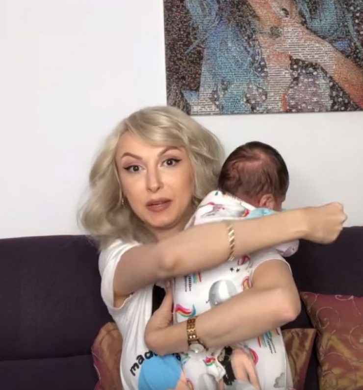 Andreea Bălan a ținut-o în brațe pe Clara, însă cu mare grijă, pentru a nu-i dezvălui chipul.