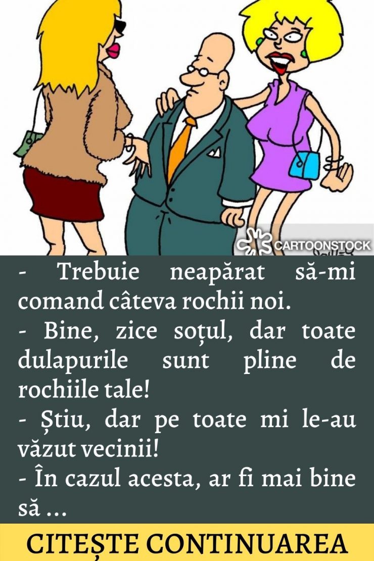 – Bine, zice soţul, dar toate dulapurile sunt pline de rochiile tale!