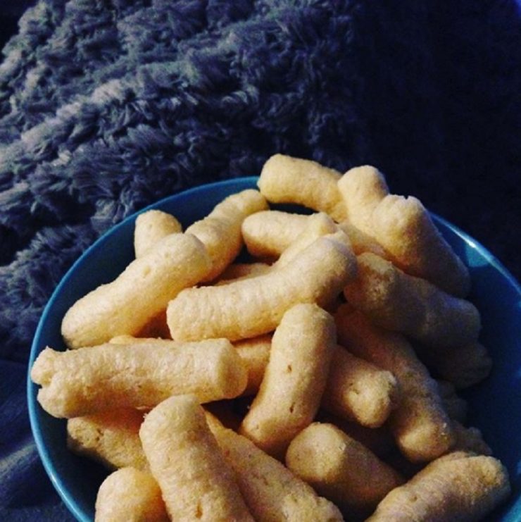 Gustare: 100 -120 de grame de iaurt și vreo două mâini cu pufuleți