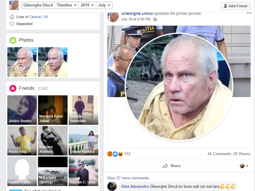 Și deși e destul de evident că acesta este unul creat de o terță persoană, și nu de inculpatul în cazul crimelor din Caracal, mulți i se adresează lui Gheorghe Dincă. Așa se face pe profilul respectiv s-au strâns nenumărate comentarii negative la adresa bărbatului, multe instigatoare la violență.
