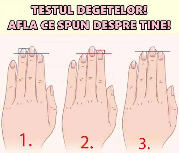 Ştiai că lungimea degetelor tale spune multe despre personalitatea ta? Din testul de mai jos poţi afla multe o mulţime de lucruri interesante despre tine. Tot ce trebuie să faci este să compari degetul mic cu degetul inelar.