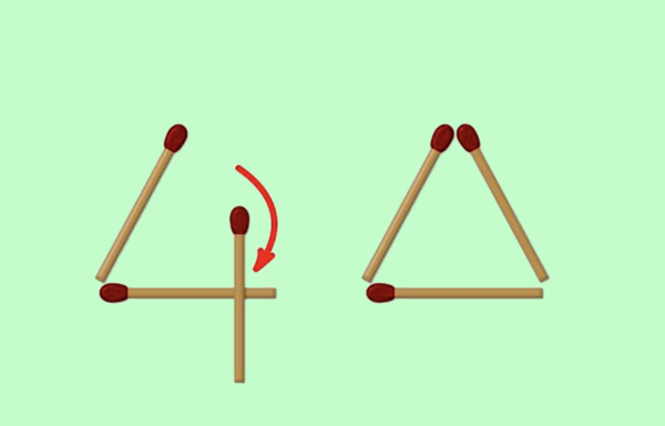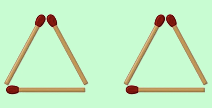 Așa cum puteți observa în imaginea de mai sus, în imagine sunt prezentate 2 triunghiuri, fiecare format din câte 3 chibrituri. Provocarea de astăzi este să mutați un singur chibrit pentru a obține 4 triunghiuri. Ți-ai dat seama cum?